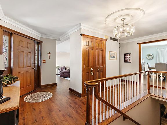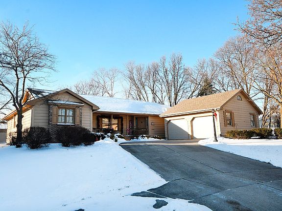 Welcoming front porch leads to this beautiful 3 bedroom, 2.5 bath one story home in the heart of Crown Point. Located on a quiet cul-de-sac street in Briarwood, you will love the spacious living area as you enter the home. Main floor has 3 bedrooms with 2 updated bathrooms. Large dining room overlooks the spacious backyard. Laminate flooring in foyer and dining room was completed in 2022. The eat-in kitchen has a cute back porch leading to the backyard. Finished basement includes rec room with built-in bar and additional living space. Additional half bath in basement, along with plenty of storage and crawl space. Newer roof, furnace, A/C, and garage door. Front porch has composite deck. Fenced in backyard features large space for entertaining, concrete porch, and concrete pad for back pergola. Come take a look, you will not be disappointed!