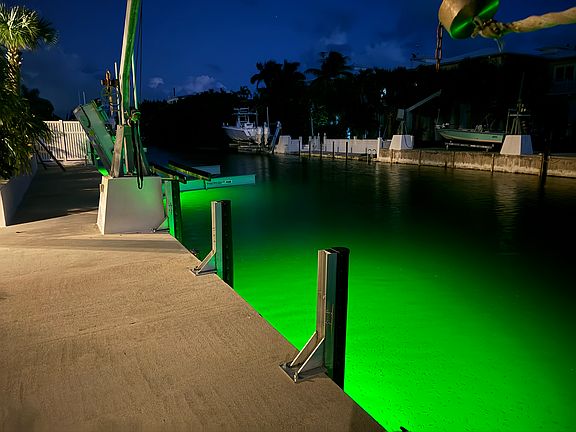 electric outlets and water spigots borders the 60 ft canal with ample room to tie off your boat and has a mounted fish cleaning table.