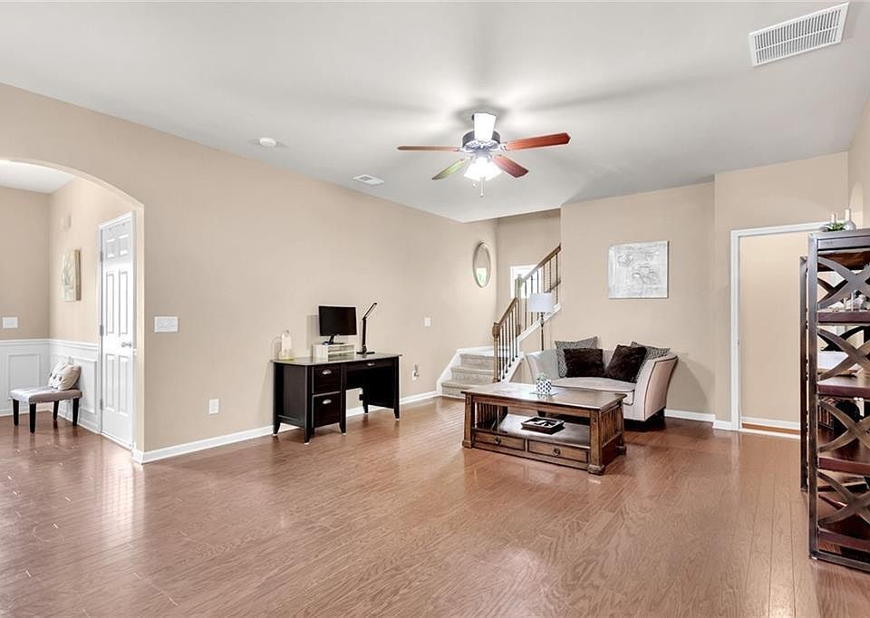 A well maintained home situated minutes from BIG CREEK GREENWAY, NORTH GEORGIA PREMIUM OUTLETS, LAKE LANIER, and the NORTH GEORGIA MOUNTAINS. Inside you are greeted with an OPEN CONCEPT LIVING ROOM, a kitchen with ample counter space, and an ISLAND that provides additional seating. Upstairs you will find the OWNER'S SUITE, guest bedrooms, and the laundry room. The back yard is bordered with mature trees that creates a private and scenic oasis. This home is near a cul-de-sac which means there is minimal traffic, and no neighbor to the left of the house that creates more scenery and privacy. Renters are responsible for electric and water