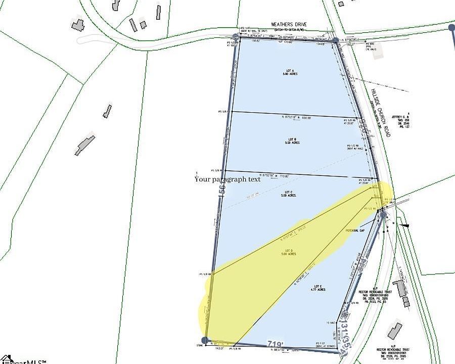 Discover Your Dream Oasis at Hillside Church Rd, Fountain Inn, SC 29644 Property Overview: Location: Hillside Church Rd, Fountain Inn, SC 29644 Land Size: 5 acres Special Feature: Nestled next to a serene creek Description: Ready to build your dream home? Look no further! This stunning 5-acre parcel at Hillside Chruch Rd in Fountain Inn, SC, is the perfect canvas for your future masterpiece. Imagine waking up to the soothing sounds of a creek right next to your property—nature's alarm clock at its finest! Nearby Amenities: Shopping: Whether you're a shopaholic or just need a quick retail fix, Fountain Inn has you covered. From the chic finds at Over the Rainbow and Black Tulip to the unique treasures at The Front Porch - Antiques and Farmhouse Decor, your shopping spree is just a stone's throw away. And let's not forget the essentials at TJ Maxx and Carolina Consignment. Dining: Foodies, rejoice! Fountain Inn boasts a culinary scene that will make your taste buds dance. Savor the flavors at The Farehouse, indulge in sweet treats at Gio's Pastry Shop, or enjoy a laid-back evening at the Fountain Inn Taproom. With options like Sweet Catherine's and Stella's Southern Bistro, your palate will never be bored. Highways: Need to commute or just love a good road trip? Convenient access to major highways ensures you're always connected. Navigate with ease and avoid traffic with optimized routes, making your daily drive a breeze. Schools: Education is a top priority, and Fountain Inn delivers. These institutions are known for their excellent ratings and diverse student populations, a well-rounded education. Why Hillsdie Chruch Rd? This property isn't just a piece of land; it's a lifestyle upgrade. Picture yourself enjoying morning coffee by the creek, hosting epic BBQs on your expansive acreage, or simply basking in the tranquility of your private oasis. Plus, with all the nearby amenities, you'll have the perfect blend of seclusion and convenience. Ready to Make the Move? Don't let this opportunity slip through your fingers. Contact us today to schedule a viewing and start planning your dream home at Hillside Church Rd, Fountain Inn, SC 29644. Your future self will thank you! 5 lots total on Hillside Church and once on 7 acre lot across the street on Craigo Rd