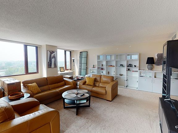 Large windows throughout with stunning views of the river valley and downtown skyline
