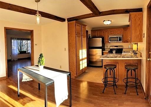 Price Reduction! This modern country townhouse is sited in the much sought after Scotty Hollow complex, with lots of privacy, facing the garden and pond. Recent updates include newer hot water tank, new flooring in kitchen and 1/2 bath, new lighting, brand new carpets in bedrooms and the lower level. Master bedroom has cathedral ceilings with skylit loft, creating a place for your office, workout room or extra storage. All the shoveling is done for you while your car is tucked into the attached garage! Scotty Hollow is a great community with clubhouse, heated pool, basketball /tennis courts, on site walking trails, prof. landscaped common areas including pond with lighted fountain, and plenty of visitor parking. The development sits adjacent to 68 acres of conservation land. Convenient to Route 3, Freeman Lake, Senior Center, downtown restaurants, Vinal Square shopping and tax free NH closeby. It's a beautiful lifestyle. Come see.