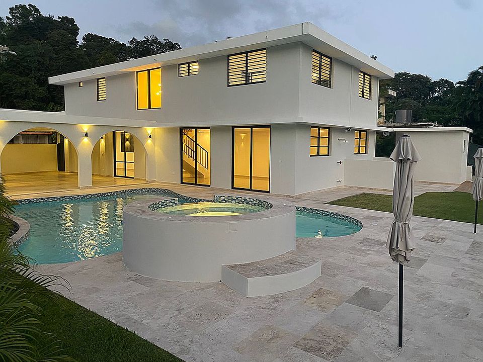 Stunning house in a tranquil cul-de-sac, boasting a complete renovation. Enjoy the beautiful weather in your spacious patio, featuring a sparkling pool and relaxing jacuzzi with all-new equipment. Step inside and be amazed by the elegance of the polished terrazzo flooring throughout the interior, while the terrace and patio feature brand new travertine flooring. Entertain guests on the large cement terrace, perfect for outdoor dining and gatherings. Park your vehicles comfortably in the double garage with room for an additional 2 cars behind. The expansive master suite includes a balcony, walk-in closet, and a luxurious new bathroom. A second junior master bedroom boasts a large private bathroom. A large laundry is conveniently located close to the bedrooms for ease of use. The gourmet kitchen has been recently upgraded and features sparkling white quartz countertops and a pantry, providing ample storage. Located in Villa Lissette, a gated and exclusive community of only 54 homes. You will be in close proximity to an array of shopping malls, top-rated schools, and excellent restaurants. Contact us at 787-370-2240 to schedule an appointment to view this exquisite home!