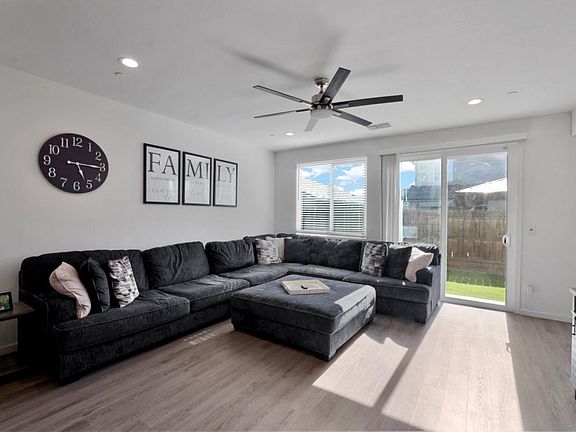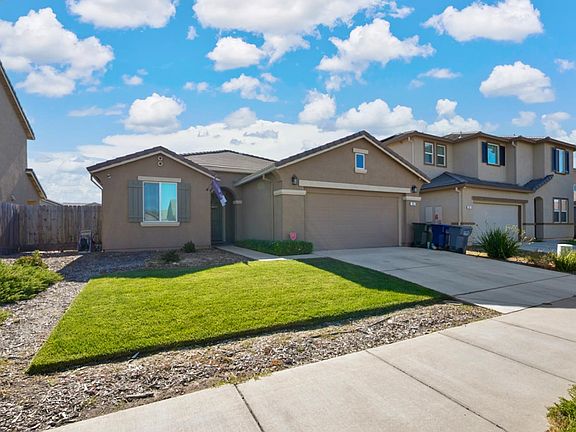 This modern 3-bedroom, 2-bath home, built in 2022, offers the potential for a 4th bedroom and features upgraded wooden cabinets, sleek quartz countertops in the kitchen, and dual-pane windows throughout. Both the bathrooms come with dual sinks for added convenience, while the backyard is equipped with low-maintenance turf grass. For comfort and efficiency, the home includes a whole-house fan, attic fan, and leased solar panels. Additionally, the garage was electrical wiring ready for an EV charger. Located just down the street from Freeway 99 in southeast Merced, you'll enjoy easy access to commuting routes, shopping, dining, and more. Don't miss your chance to own this beautifully upgraded, move-in ready home!