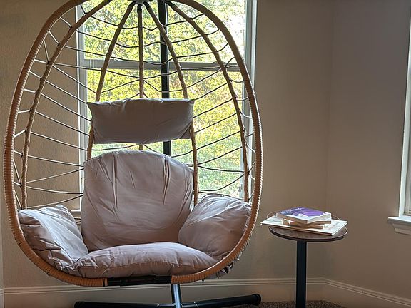Master: King bed with memory foam mattress, walk-in closet, large shower, and relaxing "egg chair."