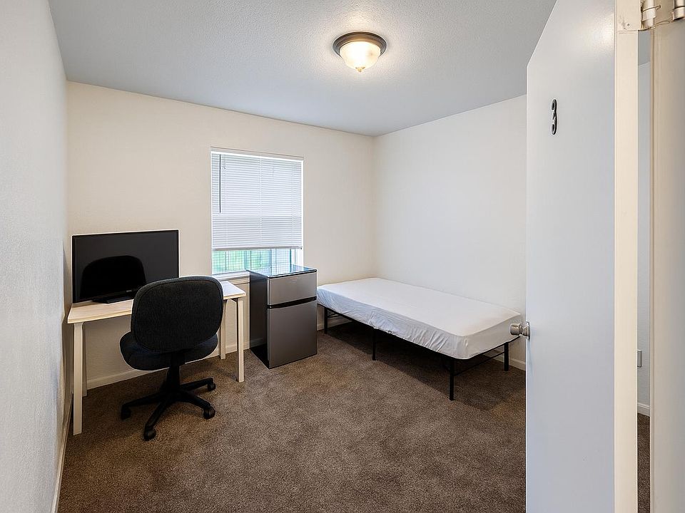 Shared Full Bathroom, kitchen (fridge, range, air fryer, cookware) for cooking ease.