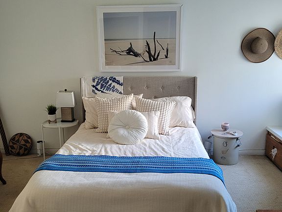 Freshly painted white walls beige carpet. Good size closet. Has window and off street parking. Rent includes: fast internet, light washer/dryer and light kitchen and driveway parking plus portable air conditioner for summer usage. Utilities included including wifi and Dish. Everything in GREAT Condition. 200 sq feet including private bath. Bedroom 12x14 plus closet.