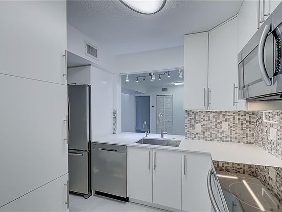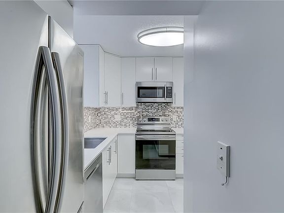 The complex is in a great location, east of US1, close to the beach, airport, and shopping. The unit has tastefully renovated bathrooms and kitchen, newer appliances, laminated floors, new indirect lighting in the living room area. There is a walk-in closet in the master bedroom and a utility closet for the washer and dryer in the kitchen.