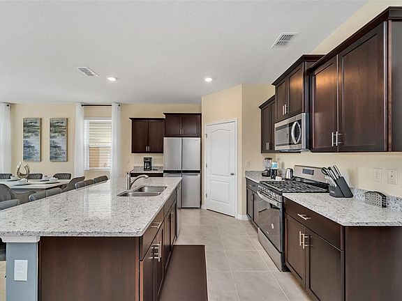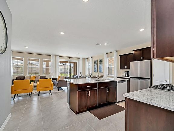 Welcome to your dream home in the sought-after resort style gated community! This stunning 2-story furnished home features 7 spacious bedrooms and 5.5 baths, offering plenty of room for family and friends. Step inside to find generous open living spaces, a modern kitchen with premium finishes, and tastefully furnished interiors. The private screened in pool and spa create the perfect retreat for relaxation and entertaining. Enjoy world class amenities including beach entry resort pool with water slide, lazy river, poolside bar & grill, fitness center, tennis courts, and an elegant clubhouse. This community is located near Walt Disney World,Universal Studios, and all of dining, shopping, and entertainment. Lawn care, internet, cable TV, and trash collection are all included in the rent. Come and see it today!!