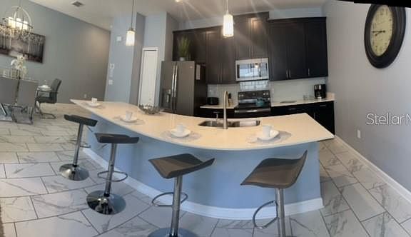 Welcome to 8980 Stinger Dr, a beautifully appointed 4-bedroom, 3-bathroom townhome in the highly sought-after ChampionsGate Resort. Designed with comfort and convenience in mind, this home is being offered fully furnished and rental ready—perfect for investors or those looking for a turnkey vacation retreat. Step inside to find a bright and spacious open-concept layout featuring a modern kitchen with granite countertops, stainless steel appliances, and a large breakfast bar. The adjoining living and dining areas create the ideal space for entertaining or relaxing after a day at the parks.