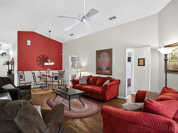 Immaculately kept home which offers 5 bedrooms, 3-bathrooms along with a large pool and private wooded view. This home is perfectly situated in a prime location with no rear neighbors, backing onto a serene, tree-lined natural area for ultimate privacy. This home features a Split Floorplan residence and is located in the sought-after Sandy Ridge community, which allows for short-term rentals. This fully furnished home offers incredible flexibility, whether you're looking for a private full-time residence, a part-time vacation retreat, or an income-generating rental property. The home features two Primary Bedrooms with En-Suite Baths, making it ideal for multi-generational living or guest accommodations. The kitchen features a breakfast bar and is fully equipped right down to the last teaspoon. This home has a great open plan layout and luxury furniture. Step outside into your private paradise: covered patio and a screened in heated Pool. This home is offered fully furnished and turnkey, making it ready for immediate move-in or rental income generation. Situated just 20 minutes from Disney, 30 minutes from Universal, and surrounded by Central Florida’s top attractions and amenities, this home offers the perfect blend of privacy, convenience, and investment potential. Roof is 2 years ago for $14,000.00 (in 2023), Pool heater is 3 years old. New flooring to the living room/kitchen 2024, all exterior painted 2024. Schedule your showing today!