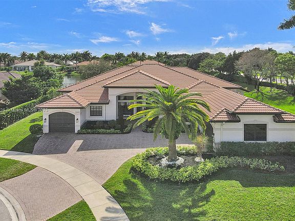Your dream home is here. The most spectacular family-friendly single family home community in South Florida, Riverstone. This spacious corner waterfront property is located in a cul d sac and features a split bedroom floor plan with 6 bedrooms, 5.5 bathrooms, plus a bonus room/office and a 2 car garage. Open living spaces and large floor plan with 12' ceilings. The gourmet kitchen with wood cabinetry, quartz countertop and stainless steel appliances. Bathrooms have been completely upgraded modern style with quatz tops. Glass sliding doors that lead out to the rear patio terrace, where you will enjoy a perfect setting for relaxing and entertaining. This home has one of the largest lot in the community. A great place to raise a family