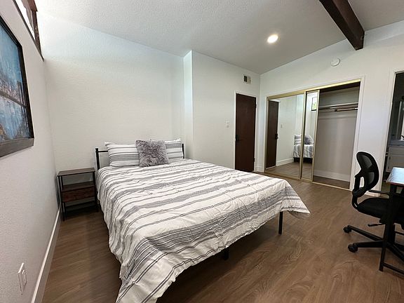 All 7 bedrooms will be available for the fall school year 2026-2027 (starting Sept 2026)! This house is perfect for SPORTS TEAMS at UC Davis or a group of friends since it can accommodate 7-9 students. The house is very spacious, bright, and airy where each room is fully furnished with QUEEN-sized beds, desks, chairs, nightstands, and mirrors. Living room with TV and dining room are fully furnished. Kitchenware, cookware, dinnerware, coffee maker, toaster, microwave are provided. Lots of assigned storage space in the kitchen, dining room laundry room and bike storage room. Includes 2 refrigerators and a storage room for bikes. Washer and dryer inside the house. ALL utilities (including WiFi) are included plus housecleaning and gardening. Central air and heat. Smart door locks in each room and external doors. All you need to bring are your bedsheets, clothes, food to cook, and toiletries. One month deposit. No pets, no smoking. Very huge backyard and includes patio furniture. This property is very popular. Close to downtown, public transportation and bikeable to campus. Driveway parking available. Let me know if you want to see it. Thanks!