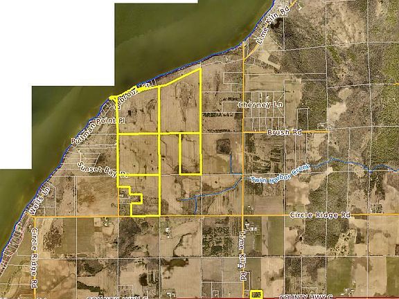 900ft plus of Bay frontage with 168 acres located in beautiful Southern Door County!! Currently leased as cropland. Shore line is mostly bluff with a dip in the northwest corner. Debroux Court is a easement near the shore feeding property owners to the southeast. This easements in some area less than 120ft from bluff, currently limiting development of shoreline. Some of the property owners have considered a relocation of this easements in trade for extension of their lots. Sketches of this proposal have been prepared and are available upon request. Door County Parcel ID's: 0120205272434A1, 0120205272443A, 0120205272441A(less 15 acres), 0120208272412, 0120208272411A & 0120208272413. Frontage was measured on DC GIS site, is approximation.