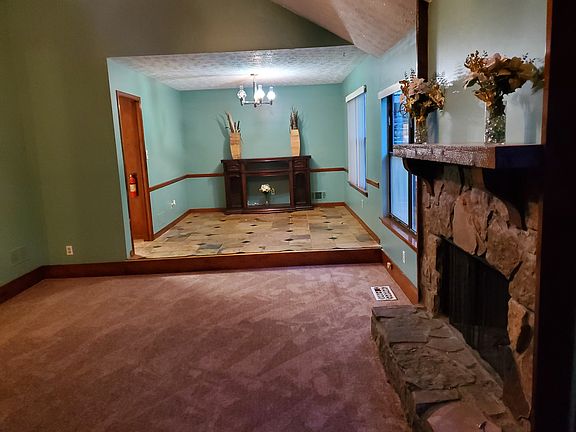 This home is a large Ranch that sits on a corner lot in a very quiet community w/ friendly neighbors this is a must see it boasts a spacious custom kitchen w/ breakfast area, w/Ceiling fan & pantry, upgraded slate flooring. Large carpeted family room with stone fireplace Vaulted Ceilings w/ skylight, separate dining rm, Central AC & Heating unfinished 400 Sqft Basement. New Roof / New Carpets / repainted