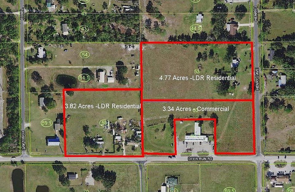 POTENTIAL!!! This property is a total of 11.93 acres and has 848 ft +/- frontage on Deer Run Rd and 626 ft +/- frontage on Henry J Avenue. There are 3 separate parcels included in this price with a 3.34 acre parcel which is on the corner and has road frontage on both sides of the convenience store (store is NOT for sale and is NOT included in this offering). This parcel is currently zoned AC with a Future Land Use of Commercial and has a well, septic and electric service to the left of the store. Also 4.77 acres on Henry J Ave with one well, 2 septic tanks and 2 electric services. Also included is 3.82 acres with one well, 2 septic tanks and 2 electric services. The 4.77 acre and 3.82 acre parcels are zoned AC with a Future Land Use of Low Density Residential. There is a possibility all could be zoned commercial with a land use amendment.