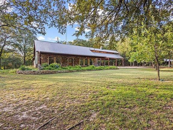 Private 40+ acre estate offering a rare mix of privacy, luxury, and flexibility. A gated entry and long drive create a sense of arrival, opening to a fully updated 4-bedroom, 2-bath residence where every detail has been refreshed with modern design, spa-inspired baths, and imported finishes chosen for quality and longevity. Outdoor living is unforgettable here — wide porches for quiet mornings, wooded trails for exploring, and a large stocked pond with dock and slip for fishing, paddling, and sunsets that turn the water gold. The property also features a barndominium with full commercial-grade shop, a fully equipped log cabin, and multiple finished outbuildings. Designed for multi-generational living and entertaining, it offers abundant guest accommodations and flexible spaces. Income opportunities include eight RV pads, four campsites, and a treehouse, blending retreat with revenue. Security, extensive Wi-Fi coverage, and two Level 2 car charging stations complete the package. Estates of this scale, with water, luxury updates, and income potential, are exceptionally rare in North Texas — a turnkey compound ready for its next chapter.