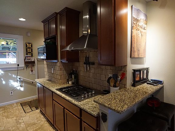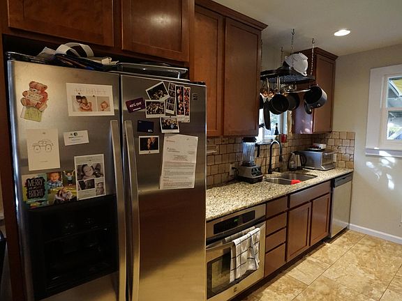Hardwood floors and tile upstairs. Updated kitchen with stainless appliances and updated bathrooms. Great backyard with covered patio.