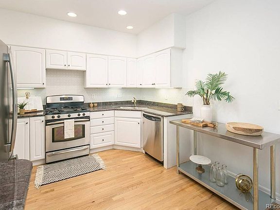This townhome lives like a single-family home, laid out logically on 3 levels: main floor living, upstairs bedrooms, basement flex space. Soaring ceilings, arches and a graceful staircase greet the front entry, which flows into a semi-open living, dining, kitchen plan. Freshly painted and re-carpeted throughout. Kitchen has stainless appliances, gas stove, granite countertops.
