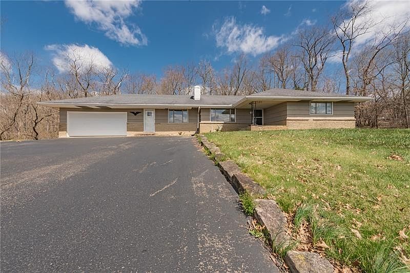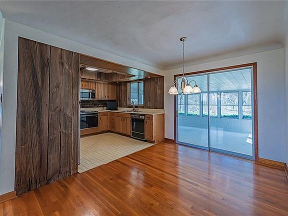 This mid-century stone and cedar ranch is nestled on 4.6 park-like acres. It has been well maintained and features a large first floor family room as well as a large enclosed porch - an ideal place to enjoy nature. The living room offers a nice view of the land and one of the bedrooms offers tongue and groove cherry paneling. The oak kitchen has a jenn Aire range and Corian counters. A 14 month Home Warranty is included too!