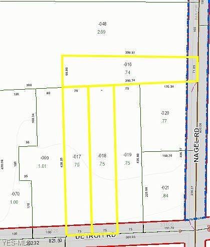 LOCATION, LOCATION, LOCATION! This MLS, 4167247, Parcels 04-00-022-102-017 and parcel 04-00-022-102-018 are commercial lots, C-1 lots, Detroit Rd. MLS, 4167244, Parcel # 04-00-022-102-016 is a residential lot on Nagel which can be converted to a C-1 commercial lot. Offered are three lots totaling a little less than 3 acres. 2 lots are on Detroit and 1 lot is on Nagel. Lots are at the corner of Nagel and Detroit. This residential lot is across the street from Drug Mart, a Dunkin Donuts and other retail. Less than a mile away is the new Meyers superstore/gas and I-90 Lear/Nagel interchange. This is a high traffic area and one of the fastest growing areas in the state. Perfect area for several sectors ranging from medical to hotel to retail and more! DON'T MISS OUT ON THIS AMAZING OPPORTUNITY! Within 5 minutes is Walmart Super center, JC Penney, Lowe's Cabela's, Duluth, Menards, and all Avon Commons. Other surrounding lots are C-1. Very little land is left in Avon for commercial businesses. Call me for more information.