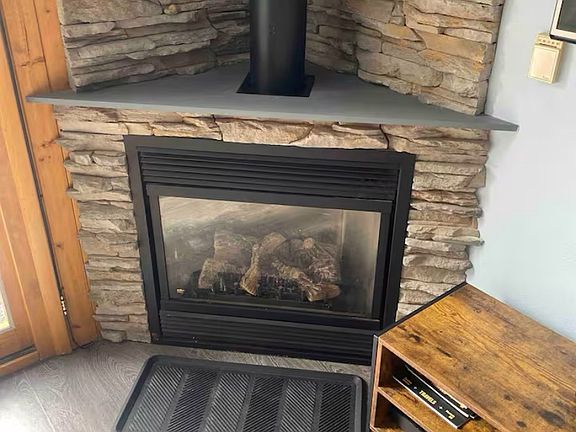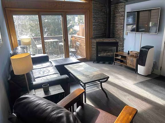 This top floor condo provides a quiet and relaxed feel. Vaulted ceilings and large windows make this place feel spacious. Enjoy the beautiful mountain views from the private balcony and community grill. Includes 1 King Bed, 1 Queen Pull Out Couch, 1 Queen Air Mattress. Relax on the couch or recliner near the fireplace. Two 65' inch TV's, both with full cable including HBO, HDMI hookups and high speed WiFi.