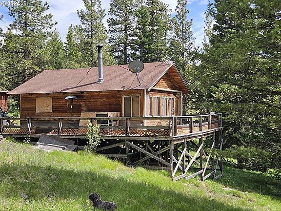 RARE OPPORTUNITY to purchase this private & remote 2 bedrm cabin on 60 acres with views of the Wallowa Mountains. This off-grid, get away peaceful haven, is located on "The Divide" within a 45 minute drive to Joseph. Cabin has a wrap around deck for lounging & viewing the Wallowas & surrounding area. Most furnishings are included in the purchase along with the propane refrigerator, generator, batteries & inverter power system. There is a separate shower room with a utility sink. Two outbuildings are close to the cabin - one which houses the generator, tools, etc. & the other newer outbuilding can hold all terrain vehicles or could easily be converted to a bunk house. A good portion of the property is fenced which could provide some pasture in the well taken care of forested land. Open public area for ELK & DEER HUNTING is close by. If you need communication - cell phones do work from the cabin site.
