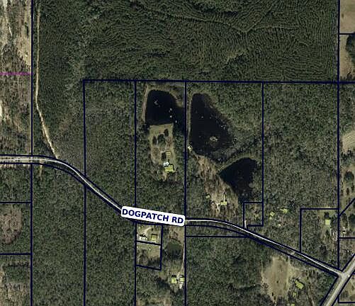 Secluded and private, yet convenient piece of property with approximately 500' of frontage on both sides of Dogpatch Road, a dead-end road off of Firetower Road close to the fire station on Fenton Dedeaux Road. The majority of the property is professionally planted with pines and has an existing internal road to access the interior acreage on the north side. The entire tract appears to be in the sought after X flood zone.