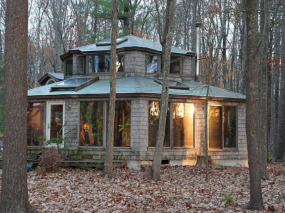 This house was my dad's architectural life work and is as unique of a rental as they come. Nestled in the woods along the shore of beautiful Great Bay a half mile from your nearest neighbors at the dead end of a nice street, this house offers unrivaled privacy in the booming seacoast region. The hexagonal house is composed of Timber-frame construction using reclaimed beams from an 1800s barn, hand made oak spiral stairs and countertops, copper roofing, intricate custom tile jobs with in floor heating, massive windows letting in the views, and a matching treehouse to accompany it all provide a very unique setting. Located on 30 acres of the historic farm property adjacent to a nature preserve with its own trails allows you to explore the land or sea without leaving your back yard. 10 minutes from Dover, Portsmouth, or Durham (UNH) and an hour north of Boston, access to I-95 makes it a convenient location to be near everything while still having your own piece of nature.