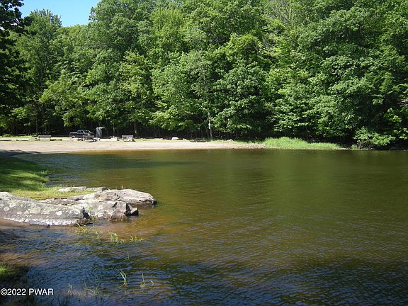 Corner building lot in amenity filled Lake Wallenpaupack community. This wooded lot borders 2 roads for flexibility of building. Enjoy The Lake, Pool, tennis court, lake beach and waitlist for a boat dock on Lake Wallenpaupack. 2 plus hours from NYC, Philadelphia. State parks and skiing are all within minutes. Perc expired