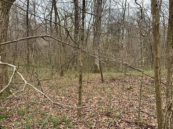Wooded lot with large old growth hardwoods. Well suited for walkout basement and back deck overlooking the wooded valley floor. In the county save on taxes!!! Property includes a cave that has been mapped by spelunkers. Site has access to natural gas and city water/sewer. A grinder pump will likely be required to utilize the sewer. Building site opportunities on the North and North Eastern area of the lot as depicted.