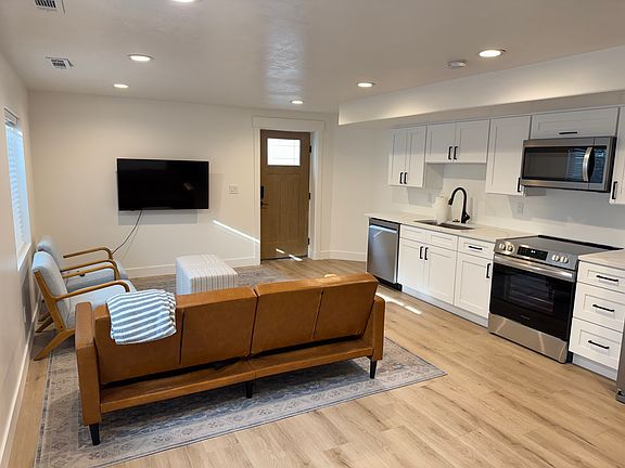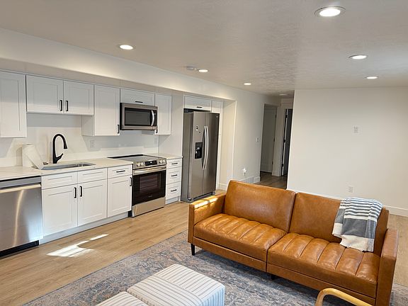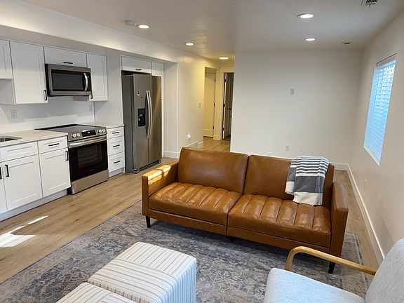 Modern basement apartment newly finished. Quiet Street and upscale Draper neighborhood. Two bedrooms, one bath, full kitchen, full laundry room. Utilities and Internet is a flat $150. private entrance parking on driveway. No yard space for animals.