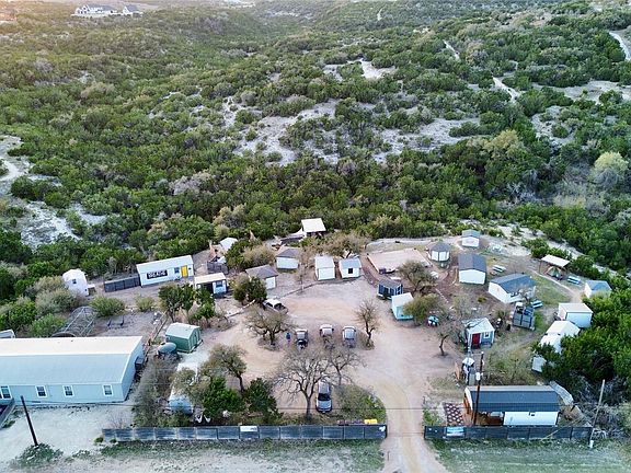 Discover an extraordinary opportunity to own this 13.2-acre (approx) meditation retreat center nestled in the breathtaking Texas Hill Country with wet weather creek and miles of views. This exceptional sanctuary, lovingly developed over seven years, offers both tranquility and profitable income streams in one of Texas's most sought-after regions. Enjoy mesmerizing panoramic views stretching for miles across rolling hills, a picturesque wet weather creek, and magical forest trails winding through majestic ancient oaks. Whether you're looking to update and expand the current retreat, or make it your own and build your dream home or business here... this non-deed restricted land has a plethora of opportunities. The gorgeous property features a stylishly updated and fully furnished 2,231 SF 4BR/2BA manufactured home (built 2020), complemented by 18 charming glamping cabins each thoughtfully equipped with AC/Heat elements, comfortable beds, and modern amenities. The professional yoga studio, small cafe; and gift market, convenient laundry/bathroom facilities, flexible RV space, and stunning sunset viewing yoga deck create the perfect retreat. This opportunity comes complete with all transferable bookings, operational systems, and the possibility of retaining experienced team. $420,000 gross income 2024 (with adjustments for owner's home and new cabin as rentals). The property offers exciting development opportunities with space to build additional residences or business. Don't miss this chance to own a slice of Hill Country paradise. OWNER/AGENT is retiring and motivated. Sister property is also offered for sale at 806 Bell Springs for additional 10+ acres, 4-bedroom home & 4 luxury villas. Plot to be divided & well lease from sister property if not purchased together. Price reflects fence, survey & infrastructure for expansion. Contact agent for details.