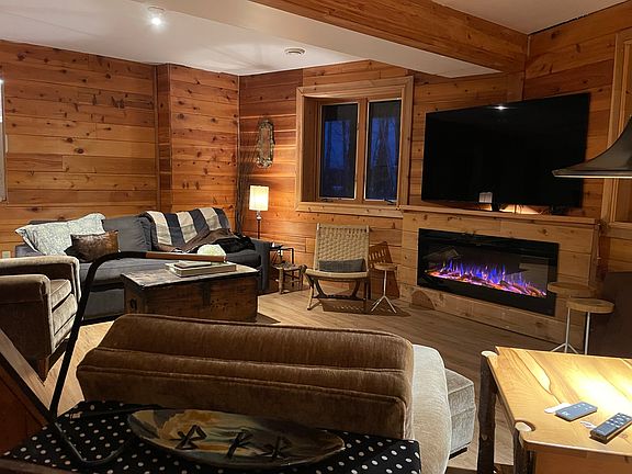 Mornings begin with sunrise on the water. Evenings end with loon calls drifting across the lake. The suite is modern, warm, clean, and intentionally designed not a dark basement or makeshift rental. It feels like a curated Northwoods retreat, but with everything you need for long-term comfort.