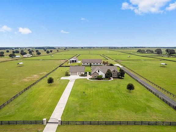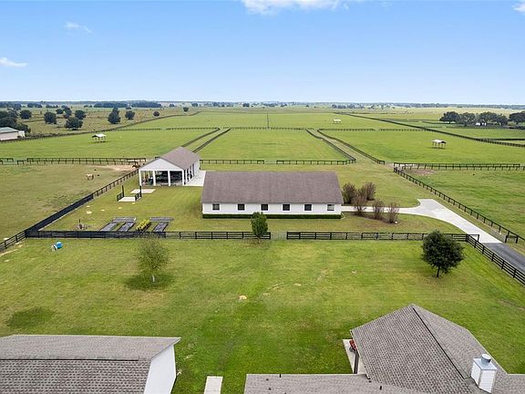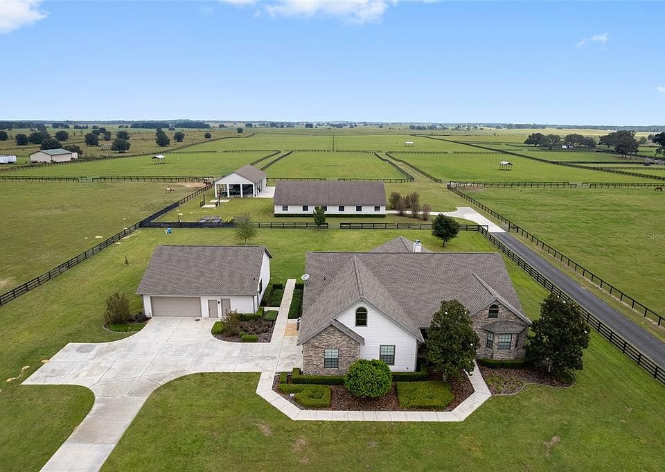 This turnkey 60-acre farm offers tranquility, top-tier amenities, and unmatched convenience. Under 10 minutes to the World Equestrian Center, 5 miles from Live Oak International, and 20 minutes from Ocala’s premier shopping and dining, The property is fully fenced with five paddocks, two large pastures, and five shade shelters. The immaculate center-aisle barn features 9 stalls, a full bath, feed/tack room, and wash rack. A spacious workshop with open bays and enclosed storage provides ample room for equipment and trailers. The custom three-bedroom home boasts wood floors, crown molding, and a stone fireplace, plus a chef’s kitchen with island seating, pantry, and wine fridge. The bonus room with wet bar and scenic views opens to a peaceful back patio — perfect for relaxing or entertaining. Move-in ready and ideally located, this property offers the best of Florida’s equestrian lifestyle.