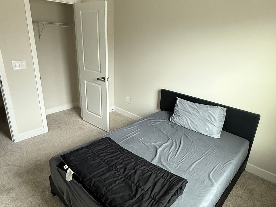This 9.5' x 11' bedroom on the 3rd floor comes with an attached closet, carpeted and shared bathroom (with one other tenant).