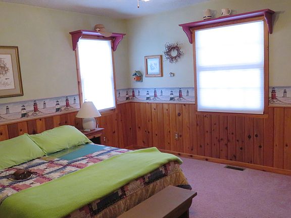 Absolutely awesome panoramic view overlooking Grand Marais Harbor and Lake Superior !! Mature foliage allows privacy yet open landscaping gives clear waterfront views! Front covered entry opens to 21' vaulted ceiling over the Living Room, Kitchen & Dining Area and Open Stairwell to upper level. Large windows allow great views of the waterfront. Plus, 2 large skylights keep the light glowing in the daytime and moonlight in the evenings. Picture your family relaxing on the 8' x 32' covered porch!A 4' deep crawl space and 22' x 24' attached garage with workbench & shelving. One car door can be converted to 2 car entry. This home has hand picked 3.5'' split cedar throughout the home plus exterior windows. The master bedroom and full bathroom are on the main floor & the large guest