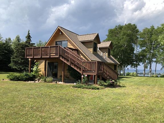 Beautiful 2 bedroom house located near Grand Marais, yet private with million dollar views of the bay and Lake Superior. The property is 2.27 acres with trees and a beautiful lawn. The two large bedrooms upstairs feature decks off both ends of the house. The house comes completely furnished and with brand new mattresses and bedding. The garage is large enough for three cars and has a studio space that could be an office or sitting room. Come see this perfect getaway spot.