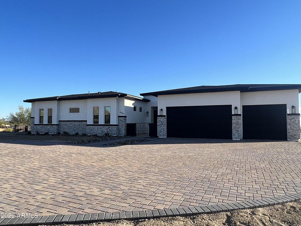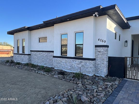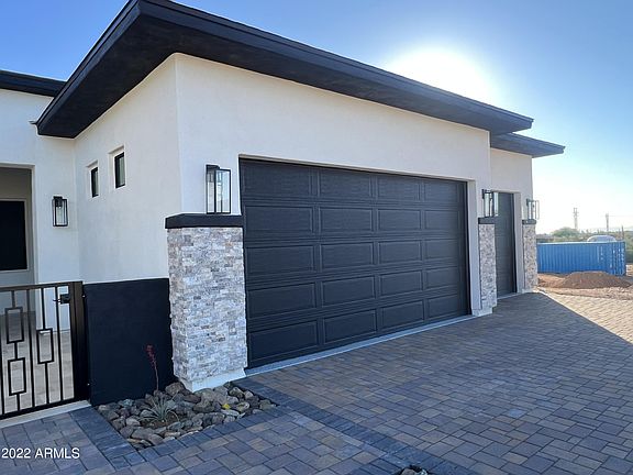 Amazing  city lights and mountain views in all directions with the Superstitions taking center stage.  Beautiful, modern, custom built  3+ BR home.  All ensuite with walk in closets.  Office was designed to be a 4th BR if needed.  High end custom Amish made cabinets and tiled baths. Open concept w/gorgeous kitchen w/gas range & bev cooler. It's perfect for entertaining where everyone can gather around the huge center island.  Faux wood beams & FP set off the GR where you will  snuggle in and spend time making memories!  Wall of glass patio doors in DR & GR lead to the lanai to take advantage of the mnt views.  Imagine yourself sitting out there having a coffee or cocktail, taking in the captivating Superstitions.  Separate master suite with beautiful tiled bath, dual vanities, and a spacious walk in closet.  Lg laundry with cubbies and lots of cabinets.  Epoxy floored 3 car, deep garage with a bonus room for exercise space, office, workshop or storage.  WIFI enabled garage door opener with quiet drive motor.  Bring your horses and toys.  Room for an RV garage and a pool. The outside space includes a court yard and paver circle driveway. Buried 250 gallon propane tank.  Irrigation lines laid in front yard.  Ring motion detector light on front of house and 450 amp service.  The 1.3 acre lot next door is also available.  Water service and meter is already installed and pole and transformer is installed on corner of lot. MLS 6436301