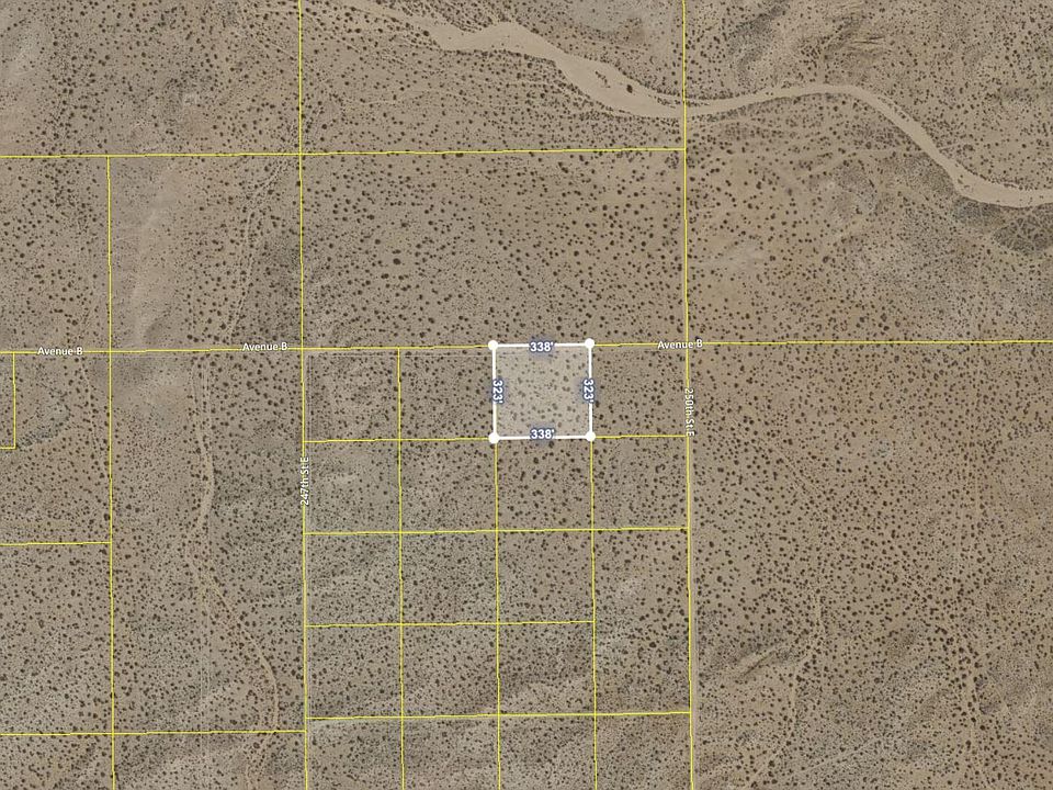 Cheap land in LA County! 2.5 acres of land with frontage on Ave B, just west of 250th St E. This is not a landlocked land parcel. With street frontage, it is much easier to access the property. Very close to Edwards AFB. Great location to build a homestead, install a mobile home, get off the grid, set up a camping site, go off roading, explore nature, and more. Great price for someone who wants to own their own piece of Southern California and LA County.