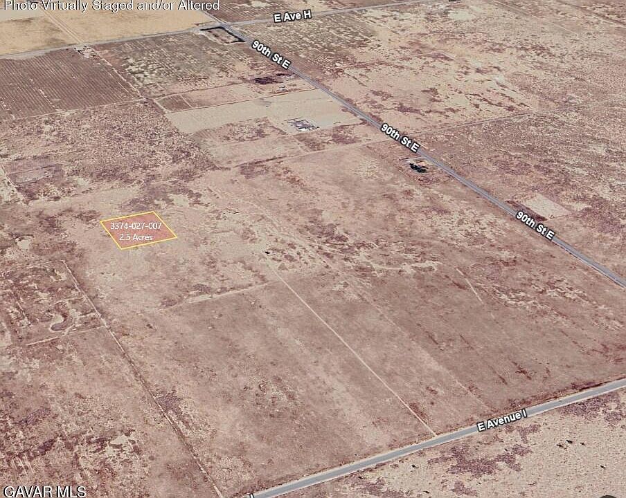 2.59 acres for sale in Lancaster, CA. This lot is located near the corner of E Ave I and 90th St E in the Roosevelt area of Lancaster, CA. The adjacent parcel is also for sale APN# 3374-027-008.