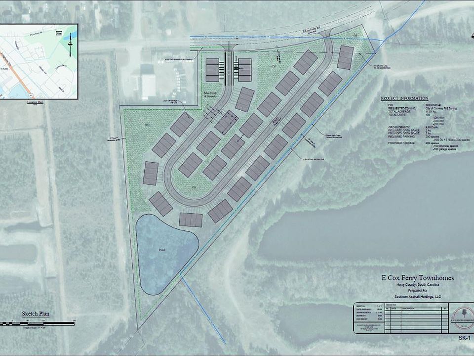 The site is currently being zoned for Multi Family Town Home. Annexation into city of Conway. 25 Building using random 50' X 87" footprint.