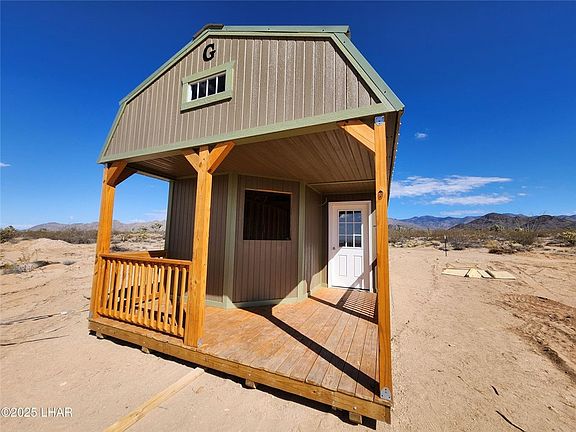 Check out this off-grid homebase with VIEWS in the AZ desert! 45 minutes to Kingman or Lake Havasu. Easy access from paved Alamo Rd, 9 miles from I-40 exit 25. 1 acre fenced with 296 sq ft Graceland lofted cabin, a matching 6 X 12 storage shed, SEPTIC, WATER HAUL, SOLAR, propane hookups. 1050 gal septic, 2,500 gal water tank and pressure pump, EG4 6,000xp expandable solar system. Inside the shed being finished by ROC licensed contractor with plumbing, drywall, insulation, electrical, LVP flooring, full bath(shower, no tub), food prep area(minus appliances), mini split, washer/dryer hookups(W/D not included), tankless propane water heater, windows, paint. Both lofts will have detachable ladder access. Bathroom will have sliding barn door. Shed will contain solar batteries and storage area. NO HOA, RV friendly, livestock and horses welcome. Easy access and panoramic mountain views. Everything will be setup for you to come and enjoy quiet desert weekends or snow birding. For piece of mind, we are offering a 1 year membership to AirMedCare emergency medical air transport, just in case. The 1 acre fenced lot has plenty of space for future development of garages, carports, RV hook-ups for friends. Purchase includes owned sheds. Also available at a reduced $67,000 if you would like to assume the shed leases from Graceland at $750/mo plus admin transfer fees. Estimated completion end of November. More pics to come as it progresses. OWNER/AGENT, sellers are AZ Broker & licensee