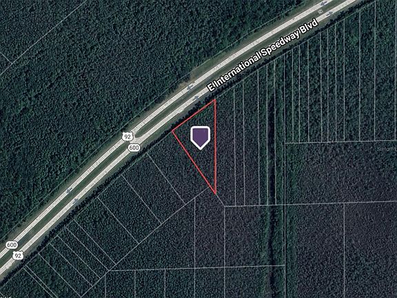1.5-acre buildable lot on E International Speedway Blvd (US-92) in DeLand, Volusia County. Zoned RC (Resource Corridor), ideal for single-family homes or small residential development along a high-traffic corridor, with natural features preserved. Parcel ID: 6120-01-03-0030. Lot dimensions are approximately 295 ft (front) x 423 ft x 523 ft, totaling 62,606 sqft. Located in Flood Zone A, so flood insurance may be required. Coordinates: 29.09575846, -81.22225609. This lot offers a rare opportunity to build in a visible, accessible location along a major U.S. highway