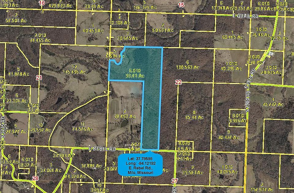 This is a vacant land. This home is located at E Rebel Rd, Milo, MO 64767.