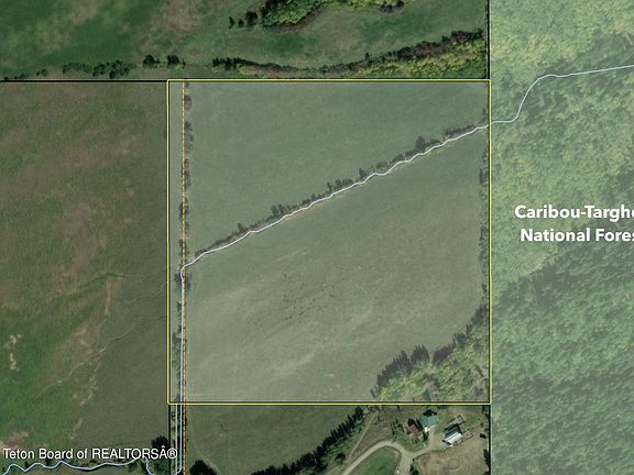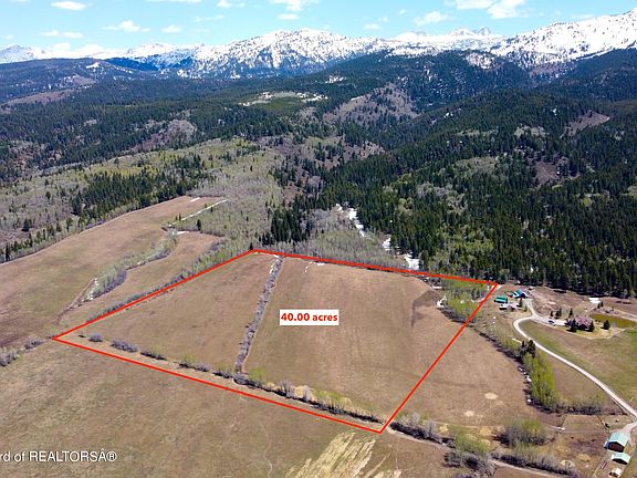 40 private acres of irrigated farmland bordering Caribou-Targhee National Forest. Trees are planted around the perimeter of the property with Dry Creek running diagonal through the parcel. R1 zoning allows for a primary home, guest house, and other buildings for up to 8,000 sqft of habitable space and 10,000 sqft total. See documents for more details.