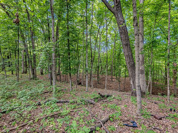 10 ACRES - BUILDABLE PARCEL - WOODED; SHED, QUONSET HUT & 2 CONCRETE FOUNDATIONS ** Whether you're looking to build your dream cabin in the woods, hunt, hike or homestead, this rare and rugged property is a blank slate for your outdoor lifestyle. This recreational haven provides prime wildlife habitat and plenty of room to roam. Tucked away on a scenic bluff, this parcel offers the ultimate escape for those who crave privacy, self-sufficiency, and connection to the land. Towering mature hardwoods-including maples you can tap for your own syrup-blanket the property, while ravines cut through the terrain creating natural beauty and drainage. Fall is an especially breathtaking time of year, as the foliage makes a kaleidoscope of seasonal colors. The driveway will immediately take you up the bluff to the driveway entrance. Part way in you'll find a metal gate. Immediately to your right you'll find a rustic cedar cabin (moveable shed) with an overhead door, loft and back deck, nestled among the trees. It's an ideal base-camp to start. Seller has cleared the old driveway that takes you to the center of the property where the land starts to slope off...and this is where you'll find two concrete foundations. A QUONSET HUT (est 20x30) is galvanized steel and sits over one foundation and the 2nd foundation was intended for his house (est 24x36). Note: The hut's flooring deck is deteriorating and it will need to be replaced. Both foundations have rough in plumbing and there is evidence of a septic outside. There is a concrete tunnel that connects the two foundations making it the perfect storm shelter. *CLICK THE VIRTUAL TOUR TO ACCESS THE INTERACTIVE MAP! *