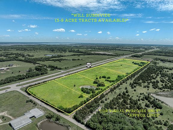 attract major employers like Texas Instruments and other large corporations, fueling regional economic growth. The property benefits from road access on all four sides and sees daily traffic counts of over 34,000 vehicles, providing excellent future visibility. Flexible options allow for subdividing from 5 acres up to 9 acres per tract to accommodate different development plans. This is a rare opportunity to secure an unzoned property with strong commercial potential in a prime location near Bois d’Arc Lake. Whether you plan to develop soon or hold for future value, this tract offers exceptional flexibility and investment upside.