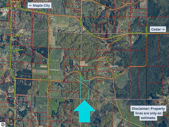 Beautiful 24.07-acre wooded parcel, offering rolling terrain, majestic hardwoods, and complete freedom without deed restrictions. Several building locations are possible, near the road for easy access, or create a secluded retreat nestled deeper into the mid-point of the property on a ridge overlooking your own peaceful valley. This amazing parcel offers endless possibilities for outdoor recreation, including prime hunting land, just in time for the season. Situated on a paved county road in the heart of Leelanau County, this convenient location is just 13 miles from vibrant Downtown Traverse City and only 2.5 miles from the charming small towns of Maple City and Cedar. You’ll also be within 15 miles of the picturesque towns of Empire and Glen Arbor. Positioned on the south side of E Valley Road, this property is located just west of 1241 E Valley Road (between S Tower Road and S Kasben Road). A completed perc test/site survey confirm suitable soils for an on-site septic system. Note: The road commission recently determined that, due to limited visibility for a driveway, they will not permit any land split at this time based on existing road conditions.