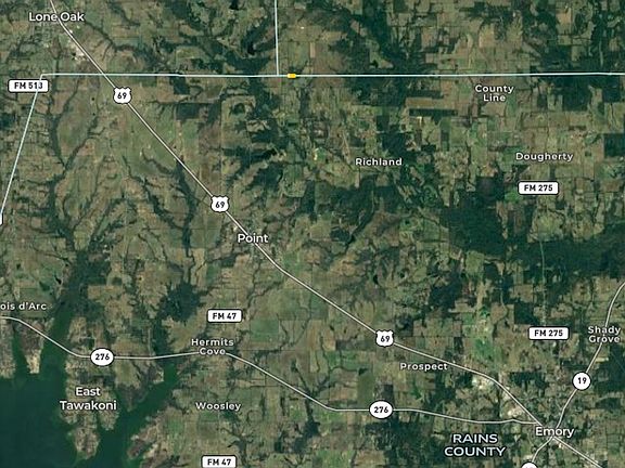Discover your dream homestead on this stunning 5-acre hardwood property in Point, TX. Nestled amid a dense canopy of mature trees, this picturesque land offers an idyllic setting for your future home. The property spans across both Rains and Hopkins counties, providing unique benefits from each. With approximately 165 feet of road frontage, access is both convenient and straightforward.There are several excellent building spots on the property, making it ideal for a variety of home designs. Electric service runs across the street, and water is easily accessible, simplifying the development process. The lack of restrictions means you have the freedom to shape the property to your desires, whether that includes creating a homestead, a vacation retreat, or an investment opportunity.The location offers a perfect balance of tranquility and convenience. A short 20-minute drive will take you to Lake Tawakoni State Park, renowned for its lake recreation and fishing opportunities. Lake Fork, also just 20 minutes away, is famous for its excellent bass fishing and additional recreational activities. For more extensive amenities, shopping, dining, and entertainment, Sulphur Springs and Greenville are both within a 30-minute drive.Educational needs are well-served by the highly regarded Rains Independent School District, known for its excellent academic services. This 5-acre wooded paradise in Point, TX, offers a unique blend of natural beauty, freedom, and accessibility, making it the perfect location for your future homestead. Don't miss this exceptional opportunity to own a piece of prime Texas land. Contact us today to explore the endless possibilities this property has to offer.